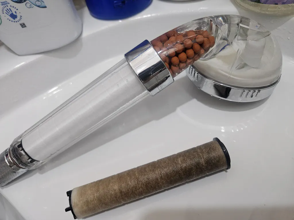 De asemenea, filtrul este prevăzut în interiorul său cu sfere minerale cu argilă și piatră Maifan, ce reglează parametrii apei (PH, Duritate, Potențial Oxido-Reductor), facând-o mult mai prietenoasă cu pielea și părul în timpul dușului.